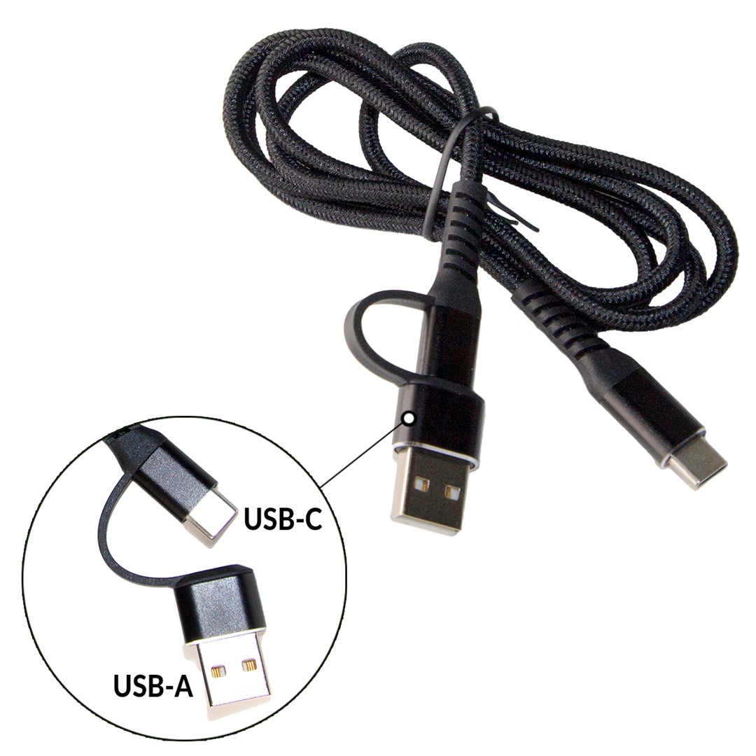 Kabel USB z adapterem USB-C spełnia dwie funkcje, może służyć jako kabel ładujący urządzenie bądź kabel za pomocą którego podłączymy urządzenia do komputera.